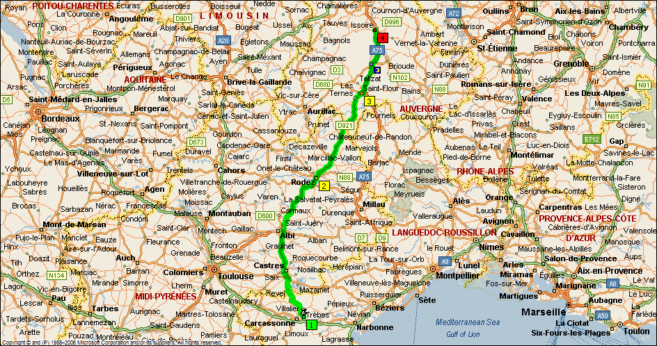 | 17:44 | 175.1 | At roundabout, take the SECOND exit onto Ramp for 0.3 mi towards A75 / Massiac / Clermont-FD |